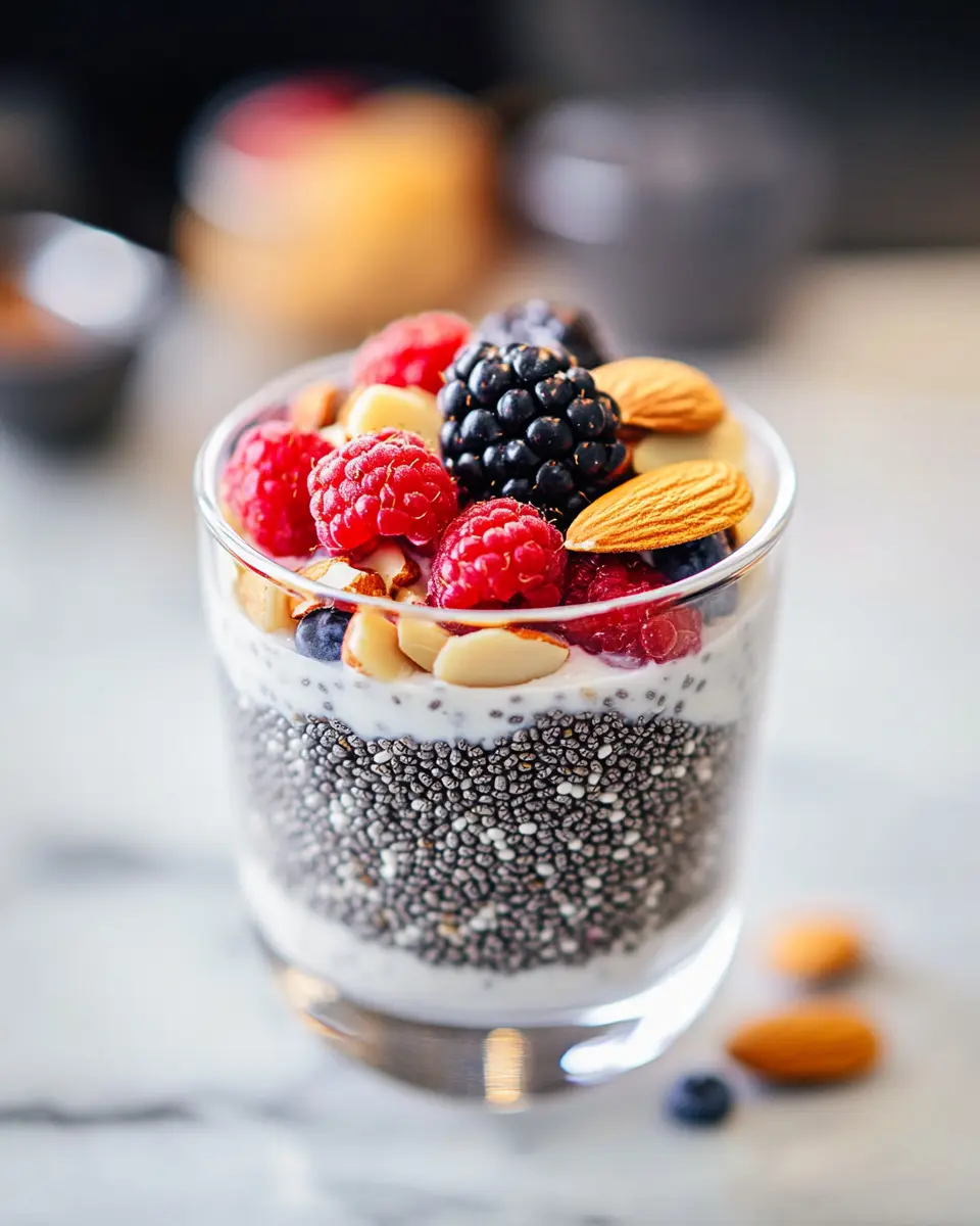 A delicious and healthy chia seed pudding made with almond milk, perfect for breakfast or a snack.