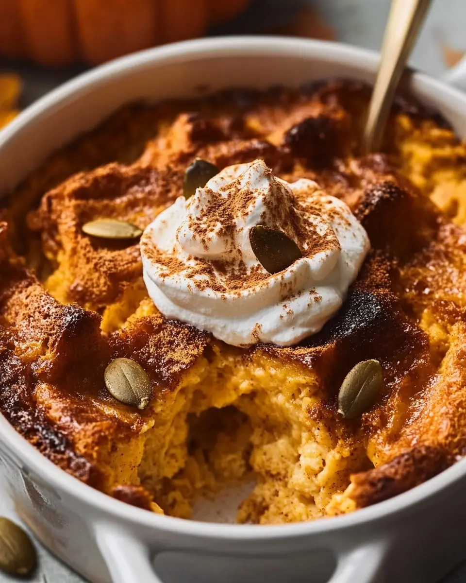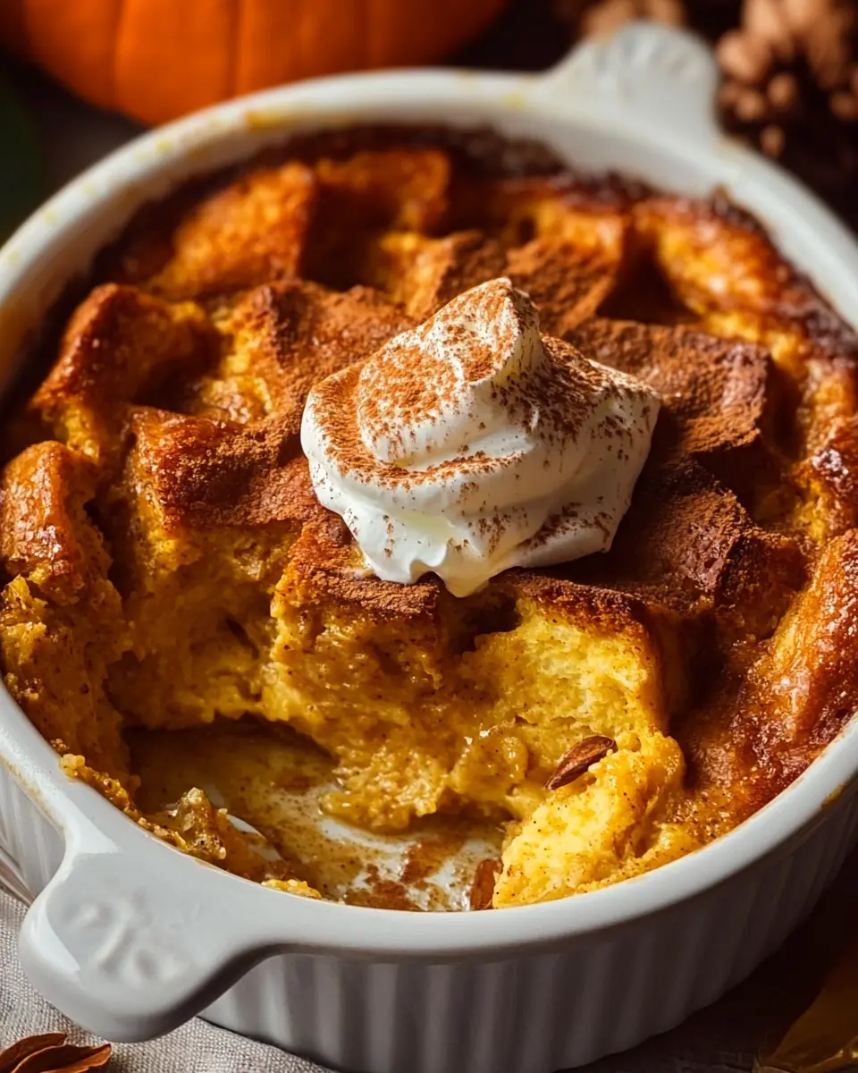 Pumpkin bread pudding is delicious on its own, but why not elevate it further? A dollop of freshly whipped cream adds a light, airy touch that perfectly balances the creamy texture of the pudding. For an extra flair, sprinkle a dash of cinnamon or nutmeg on top to enhance those warm autumn flavors.