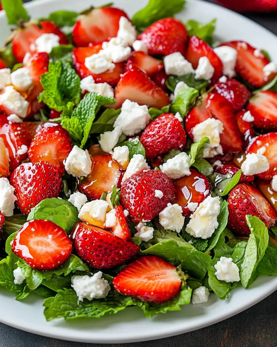 A refreshing salad combining sweet strawberries, creamy feta cheese, and a light honey dressing.